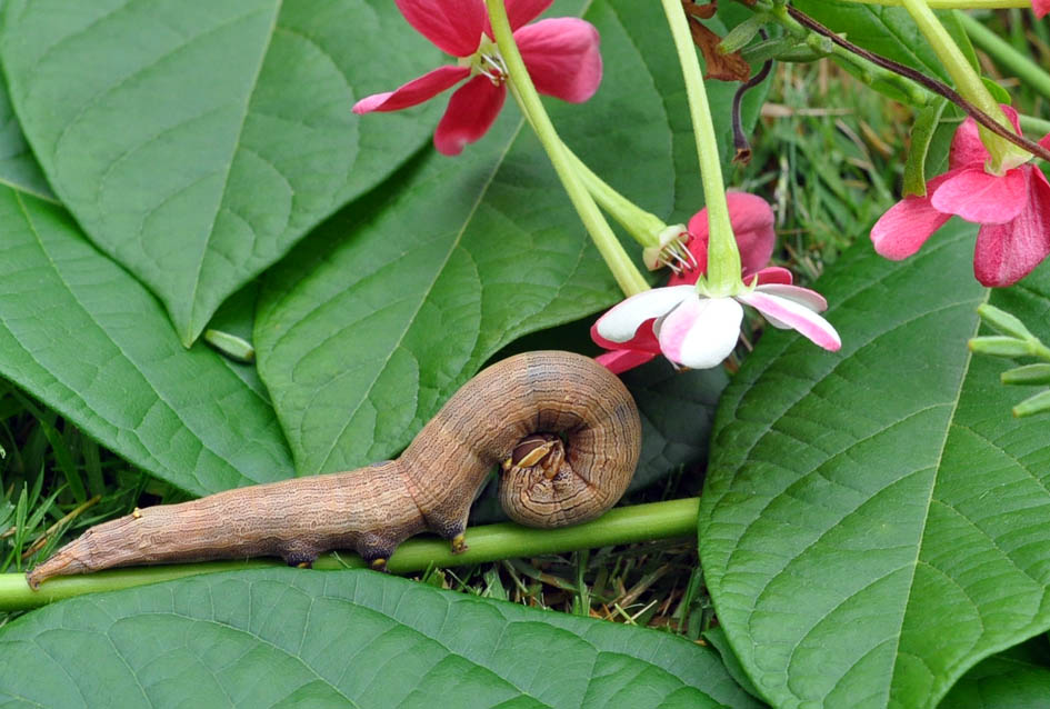 after every flowering season to encourage new growth and flowering. While clearing out the pruned vines, I came across this stiff and menacing twigworm stretched out immobile along the stem.